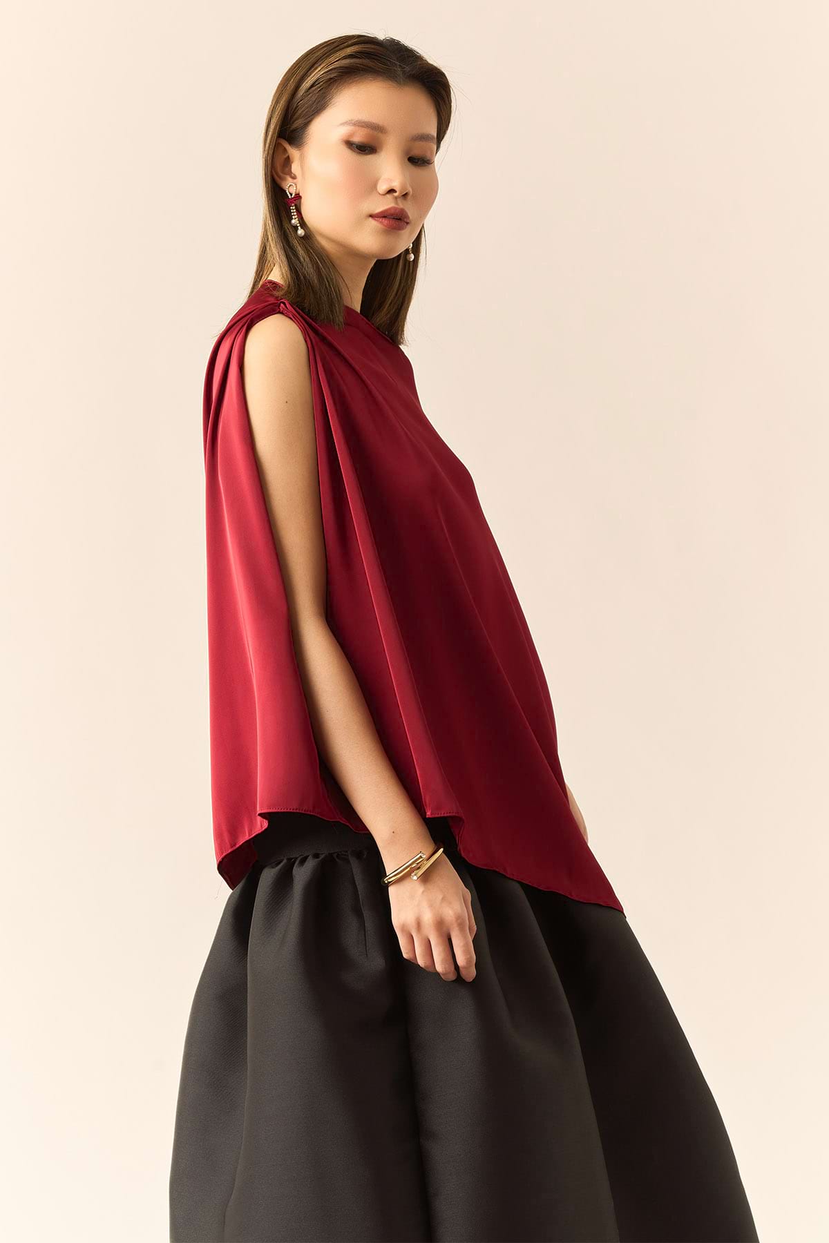 An effortless drape, cut to perfection. The Brinni Top flows with asymmetrical ease — simplicity elevated for soft, quiet moments.