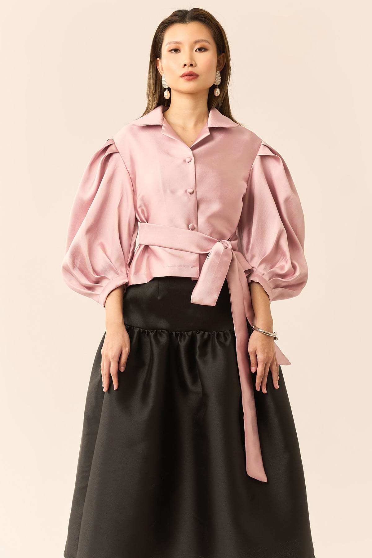The Clara Top pairs structure with softness — billowed sleeves, a cinched waist, and tailored lines that speak of quiet drama.