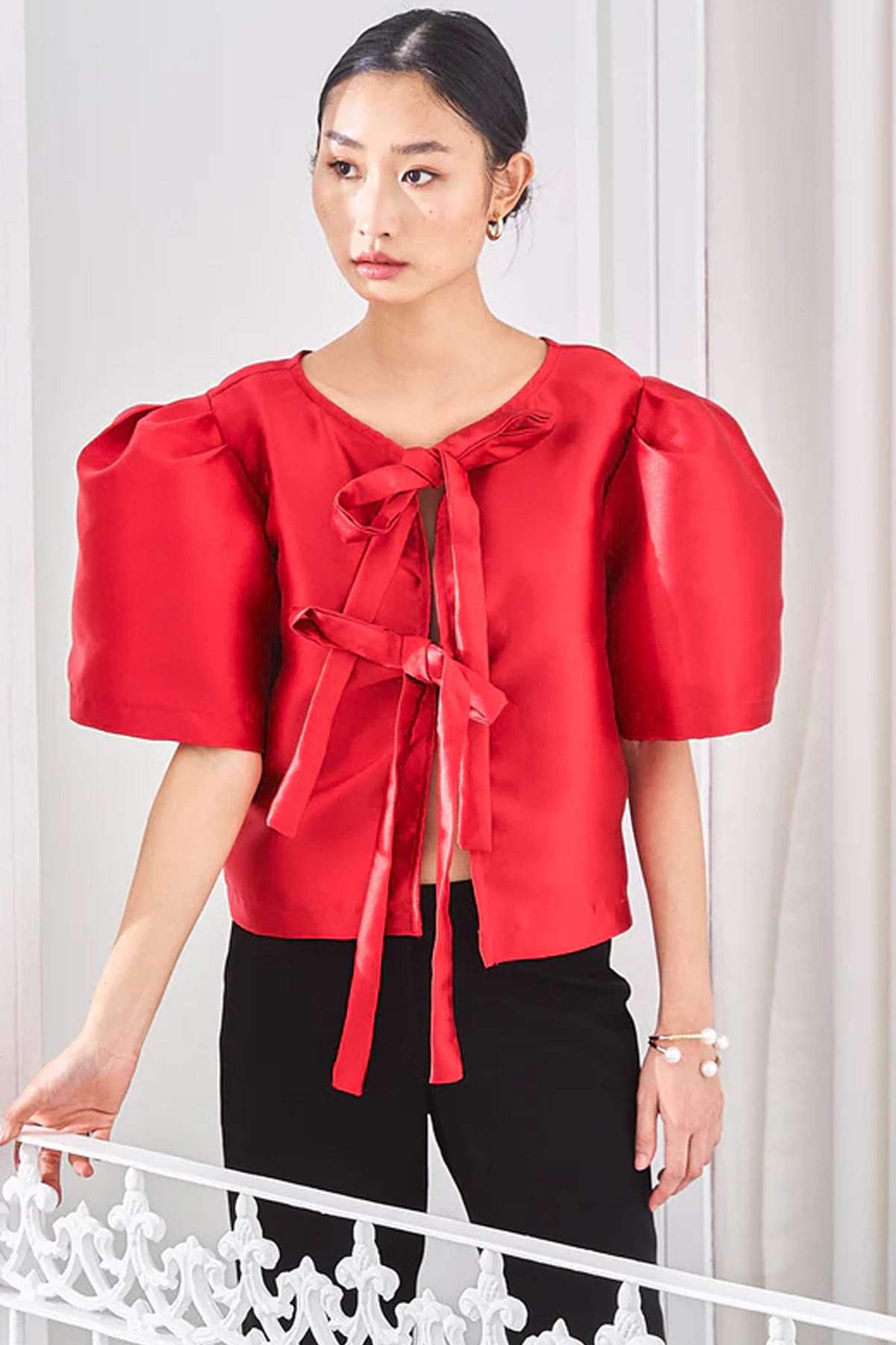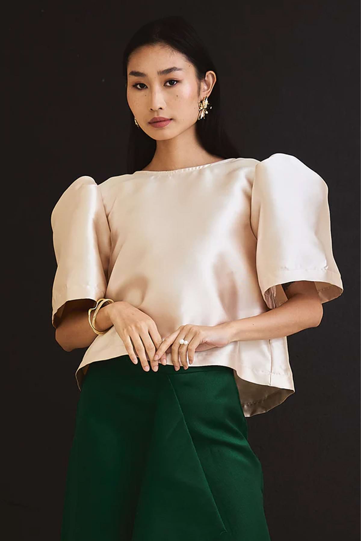 A modern bow-tied silhouette with sculpted sleeves. The Gabriela Top brings soft drama and subtle structure — perfect for moments that call for a little celebration.