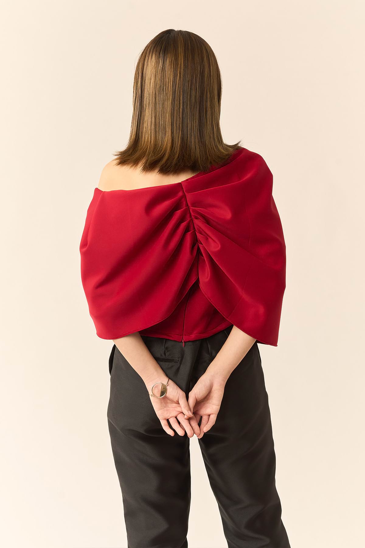 The Gustava Top redefines ease with its artful drape — an asymmetric silhouette that ties gracefully at the waist.